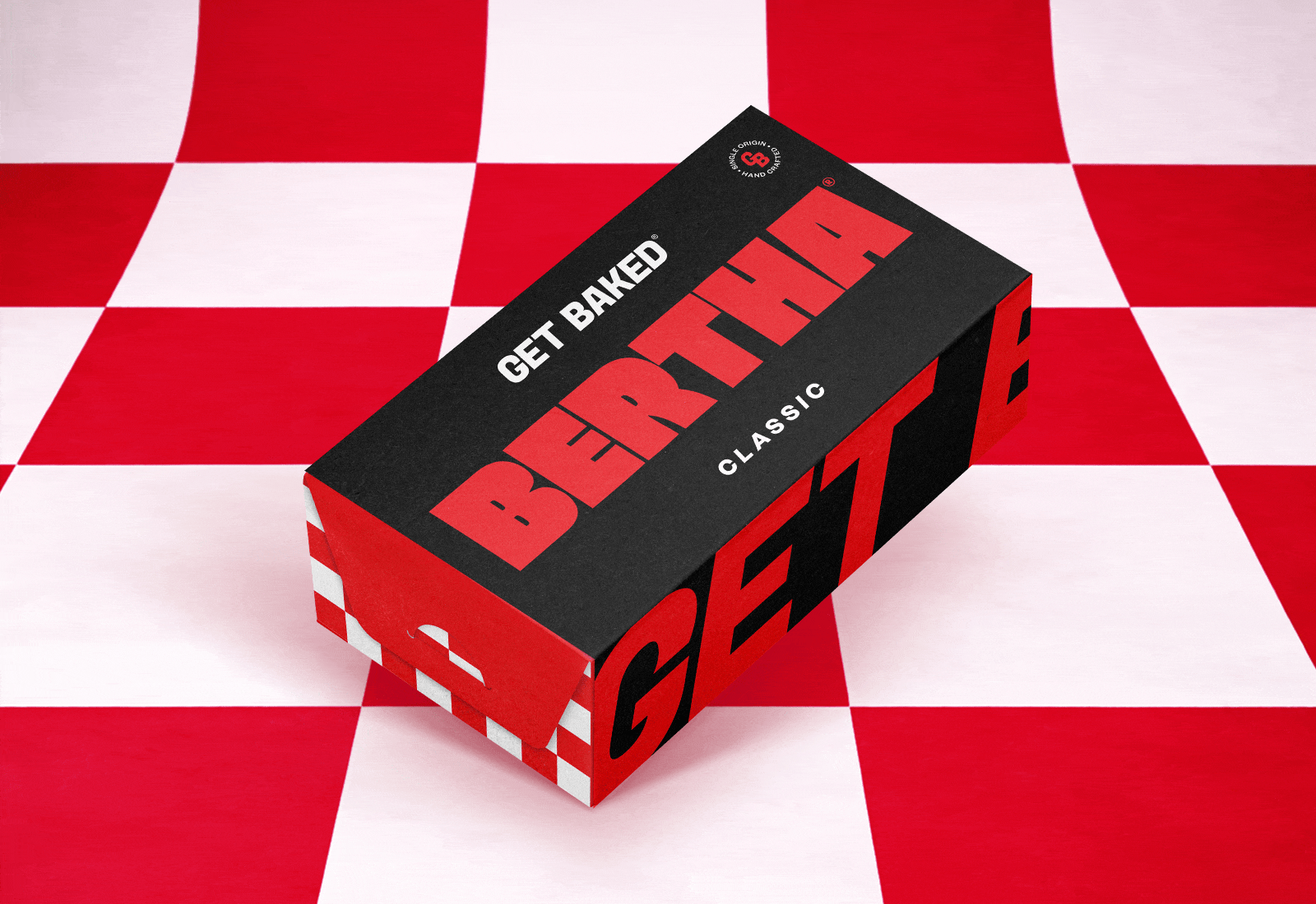 From individually boxed IPA-style cookies to the redesigned signature 24-layer Bertha (ex Bruce) cake and the launch of the smaller variant Bert, every product and package amplifies Get Baked’s attitude, impact, and category-defying style.