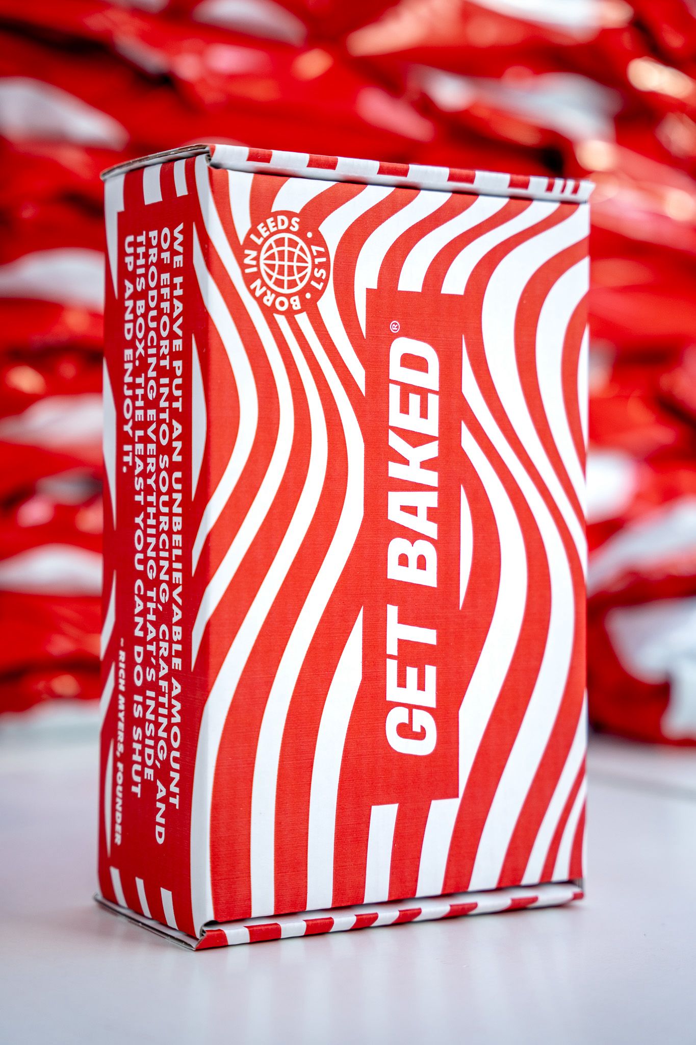 Get Baked started as a logo on a red box, iconic and already a hit with fans, but ready to grow into something bigger, a full brand experience.